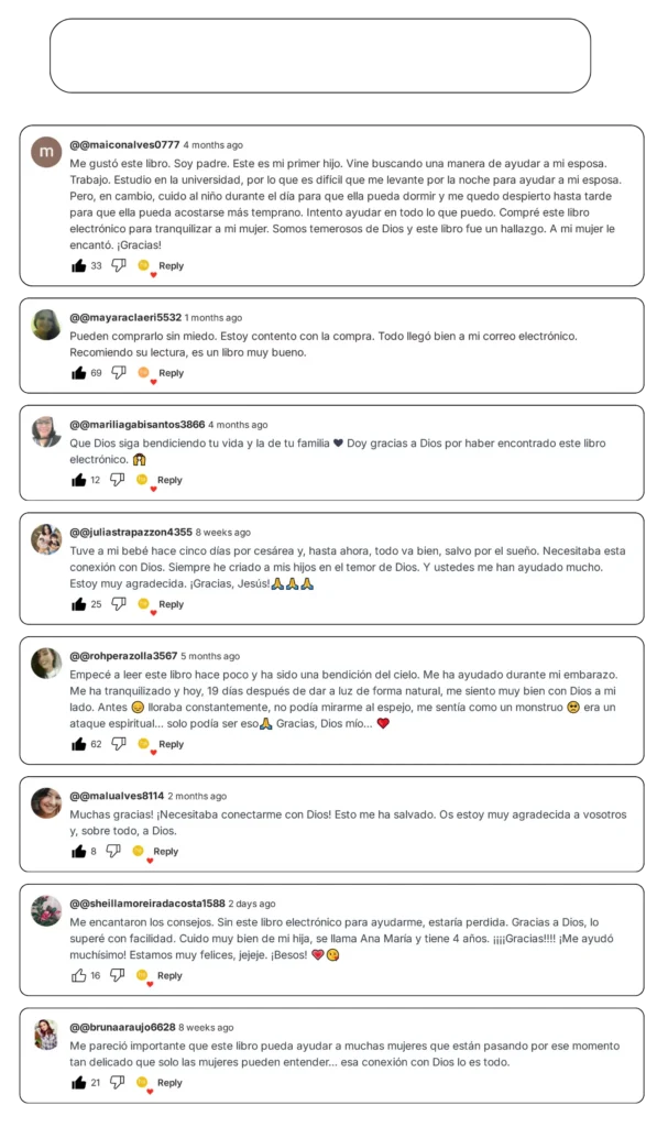 Para la nueva madre, que navega entre un amor inmenso y un profundo agotamiento, esta guía es un abrazo en forma de oración. Ofrece palabras de consuelo para los días difíciles, fortaleciendo su corazón y acercándola a la paz y a la presencia constante de Dios en cada momento de su camino.